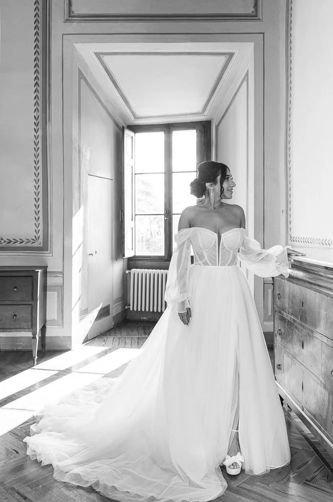 On the day itself I work with a documentary instinct and a refined sense of composition. I pay close attention to structure and to texture. The line of a dress against stone floors. The way light moves through a room. A quiet moment on a balcony while the music continues inside. I am there for the major moments, but I am equally interested in the smaller gestures that link them. My aim is for the photographs to feel like a true reflection of your day, with a clarity and elegance.